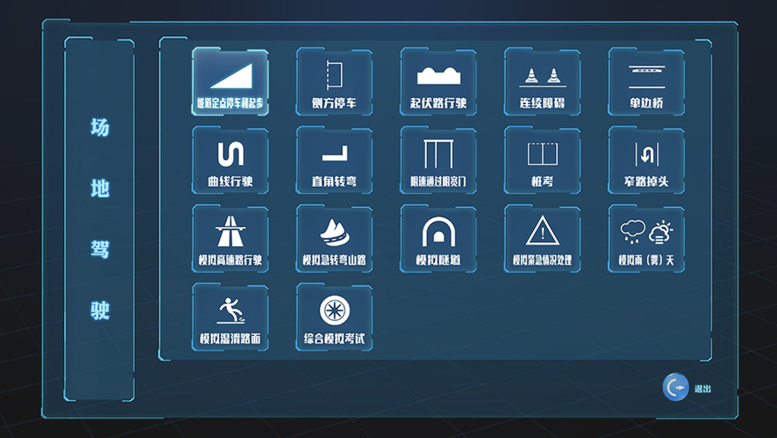 具有多場(chǎng)景、多模式、多科目的訓(xùn)練功能,訓(xùn)練科目參考《某崗前訓(xùn)練大綱》和大車駕駛訓(xùn)練場(chǎng)地建設(shè)標(biāo)準(zhǔn),滿足競(jìng)技、比武考核的要求。